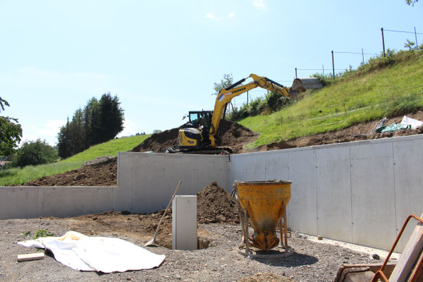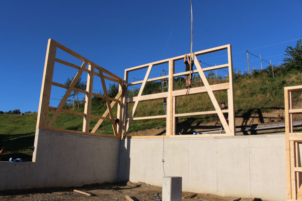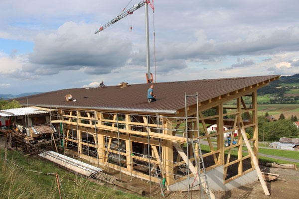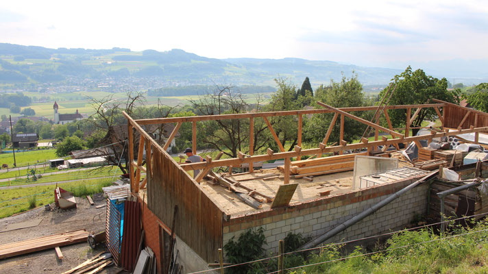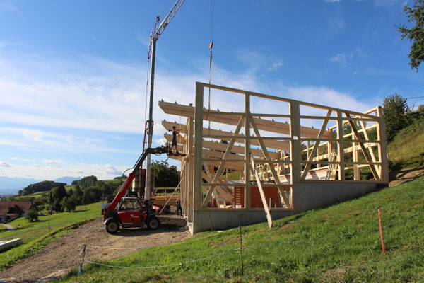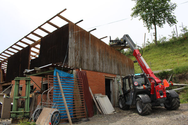 Im Frühjahr 2020 haben wir die Baubewilligung für den Ersatzneubau des Schopfes erhalten. Vorher stand da eine alte Schweinescheune, welche schon viele Jahre nur noch als Unterstand diente.