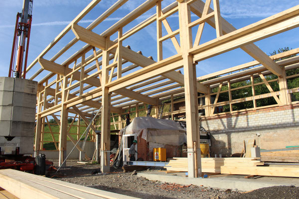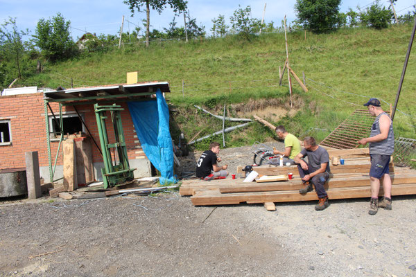 So konnten wir sämtliches Bauholz aus dem eigenen Wald schlagen, und damit unseren Schopf bauen lassen.